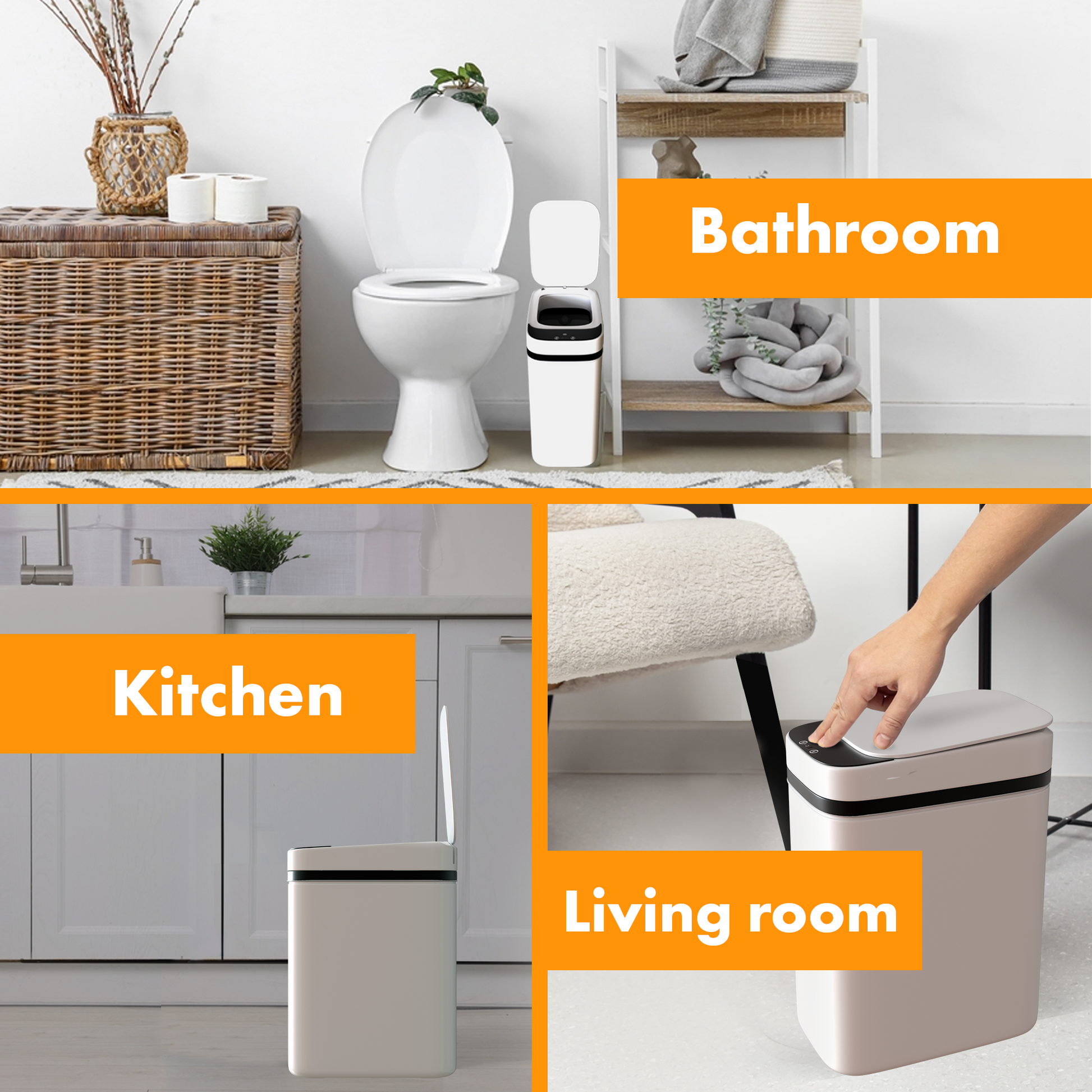 - Perfect for Every Environment: This smart trash can is ideal for any room in your home or workplace. It fits perfectly in the living room, bathroom, bedroom, kitchen, and office, offering a functional solution in every space. Its sophisticated design complements the decor of any environment and ensures hygienic and convenient waste management.